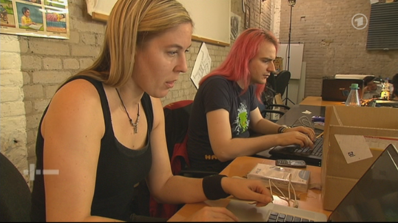 Sicher oder Unsicher: In der Fernsehsendung wird vorgeführt, wie sich ein Datendiebstahl realisieren lässt. Wir sehen Mitglieder des Chaos Computer Clubs vor zwei Notebooks.