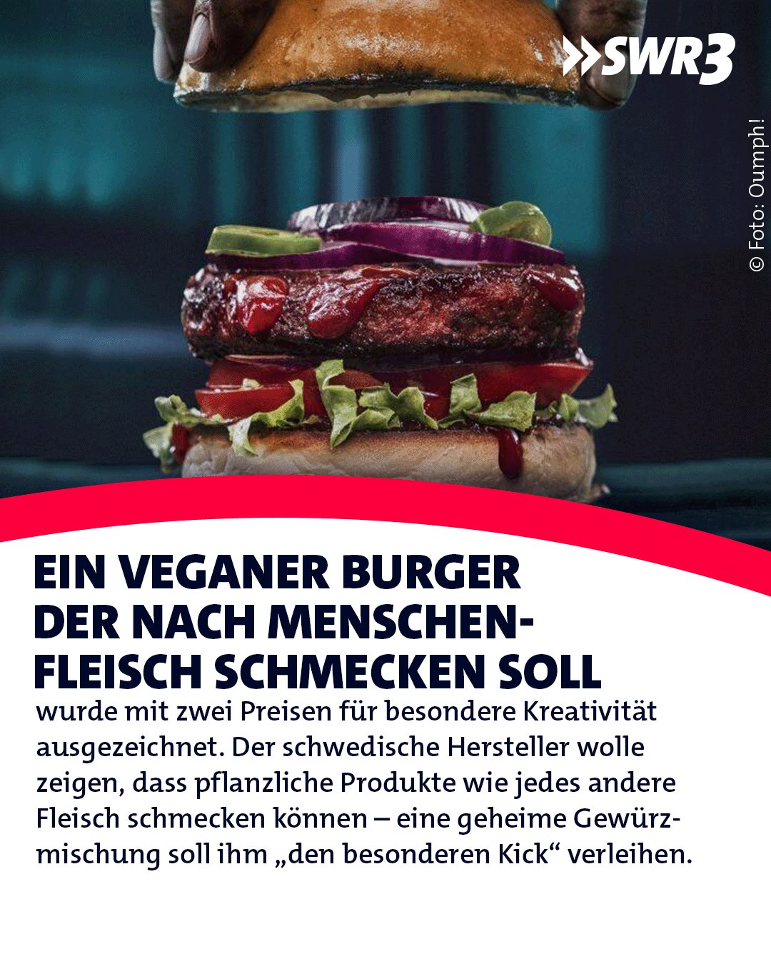 Ich rieche, rieche Menschenfleisch. Aber wie schmeckt es? SWR3 veröffentlicht auf Instagram am 29.06.2022 einen Beitrag mit dem Titel „Ein Veganer Burger, der nach Menschenfleisch schmecken soll, wurde mit zwei Preisen für besondere Kreativität ausgezeichnet.“ Worum geht es da? Burger? Vegan? Menschenfleischgeschmack? Sehr verwirrend. Was steckt dahinter?